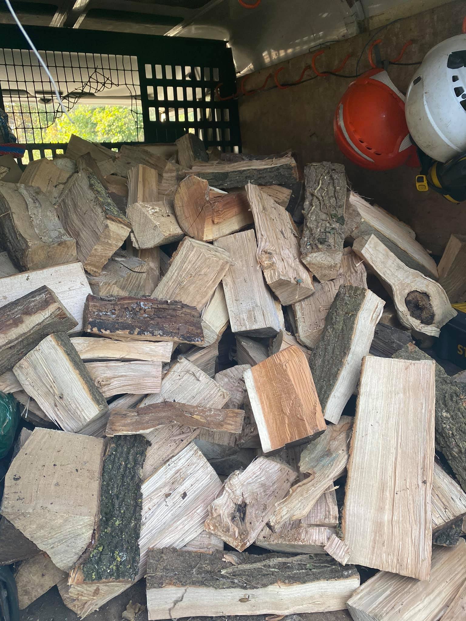 Wood chips + softwoods are taken to local stables or go to be used as biofuel. Hardwood logs are turned into high quality firewood.